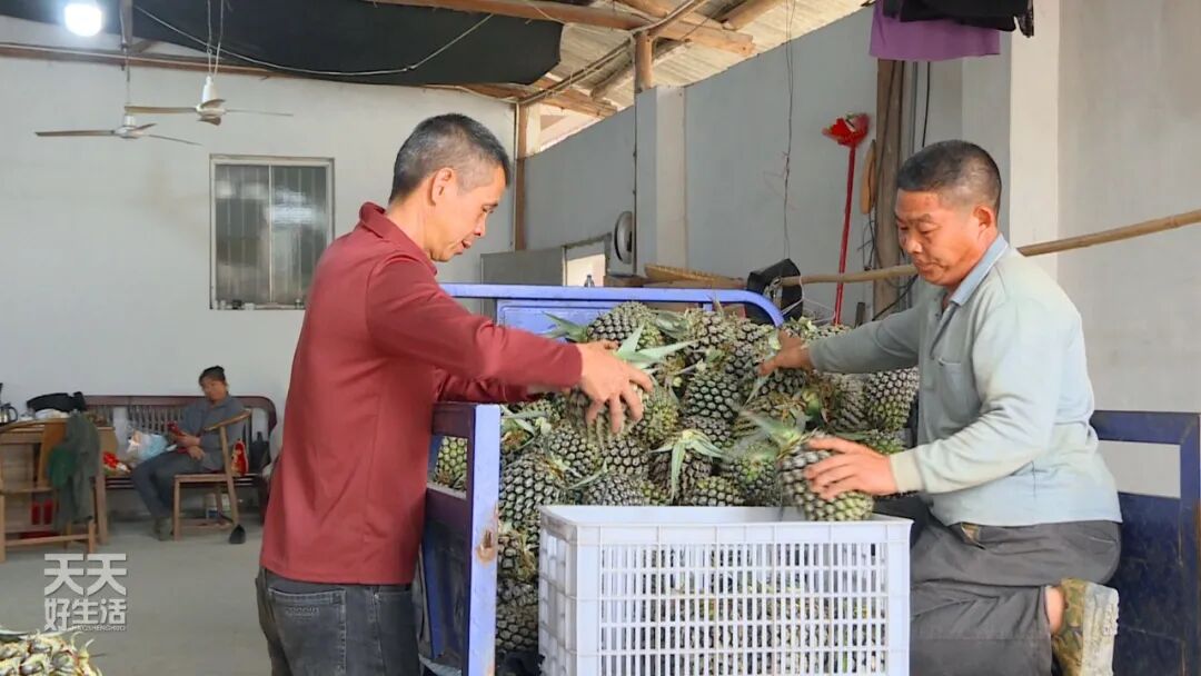 在登塘镇下林村,果农邱志勇正将一箱箱刚刚采摘下来的菠萝打包、称重,准备运往各大市场。这一个个像刺球的菠萝,在果农手里却能轻松拿捏。