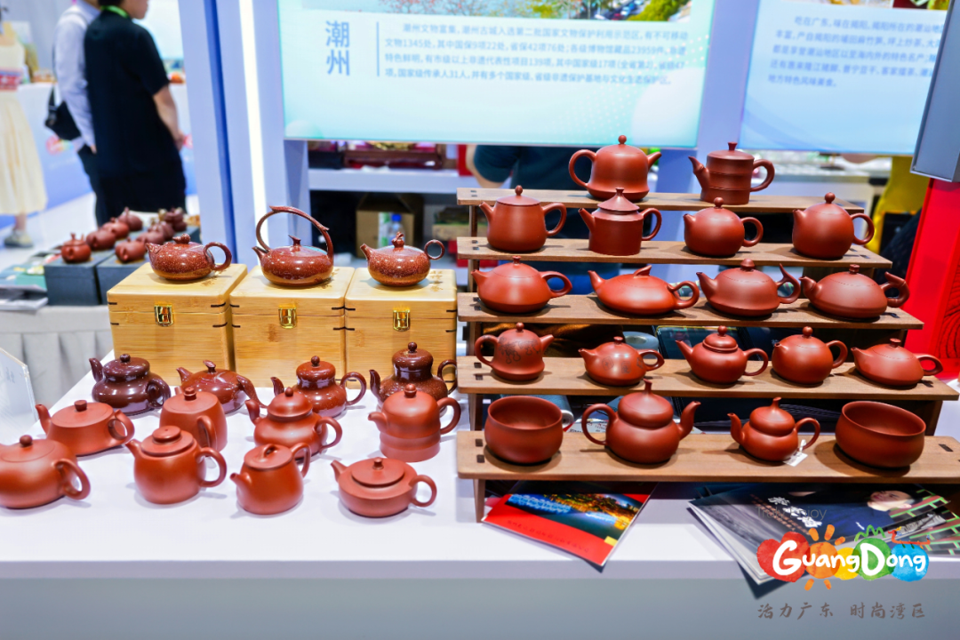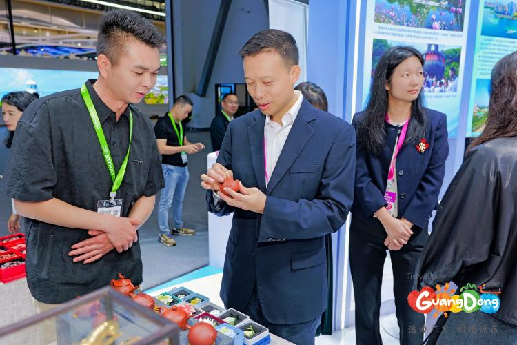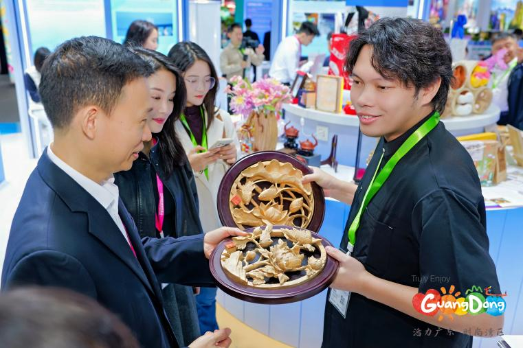 现场推介潮州文化深度游、非遗研学等精品线路,介绍广济桥、韩文公祠等景点玩法,提供全要素合作方案;展示潮州三宝、腐乳饼等特色美食,通过现场讲解让嘉宾在品尝潮州风味的同时感受潮州美食文化,成为国际旅交会上“舌尖上的潮州”活名片;同时设置非遗售卖区,潮州木雕、枫溪手拉朱泥壶等工艺产品同步售卖,兼具艺术性与实用性的作品受到嘉宾青睐。
