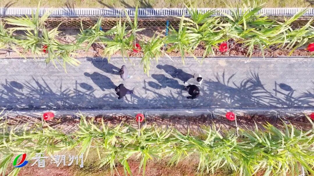 湘桥区磷溪镇溪口四村村干部 刘锡钊:村先去拓荒,种了桃花以及水杉,甘蔗都是从年初就开始种,然后慢慢培土,让甘蔗更好地成长起来,再由政府共同建设穿蔗巷这个项目,建了两个门楼,还有挂灯笼等,跟村的文旅、乡俗相结合。